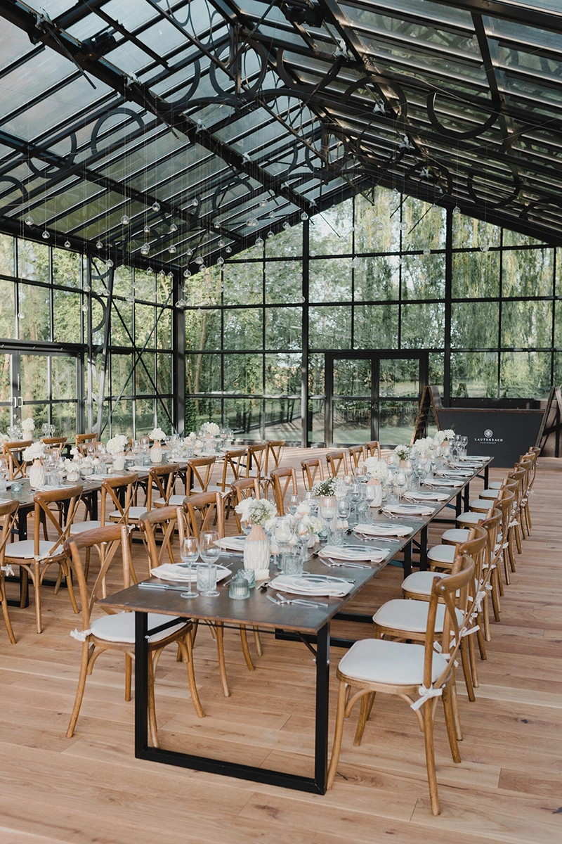 Gläserne Orangerie für bis zu 130 Gäste